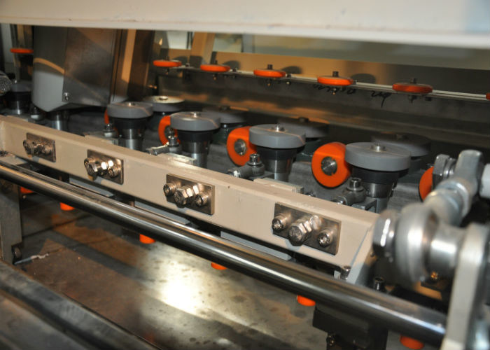 5, η ρόδα όλα συμπιέσεων μπροστινής και πίσω πλευράς κινούνται ενεργά και μεταβιβάζουν. Κανένα mater το μέγεθος γυαλιού δεν είναι το μεγάλο /small ή το πάχος διαφορετικό (8mm), αυτό όλοι εγγυάται το πέρασμα γυαλιού μέσω ομαλά. (Ίδιος όπως LISEC)