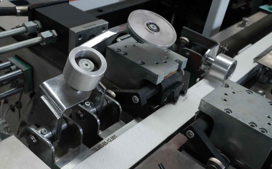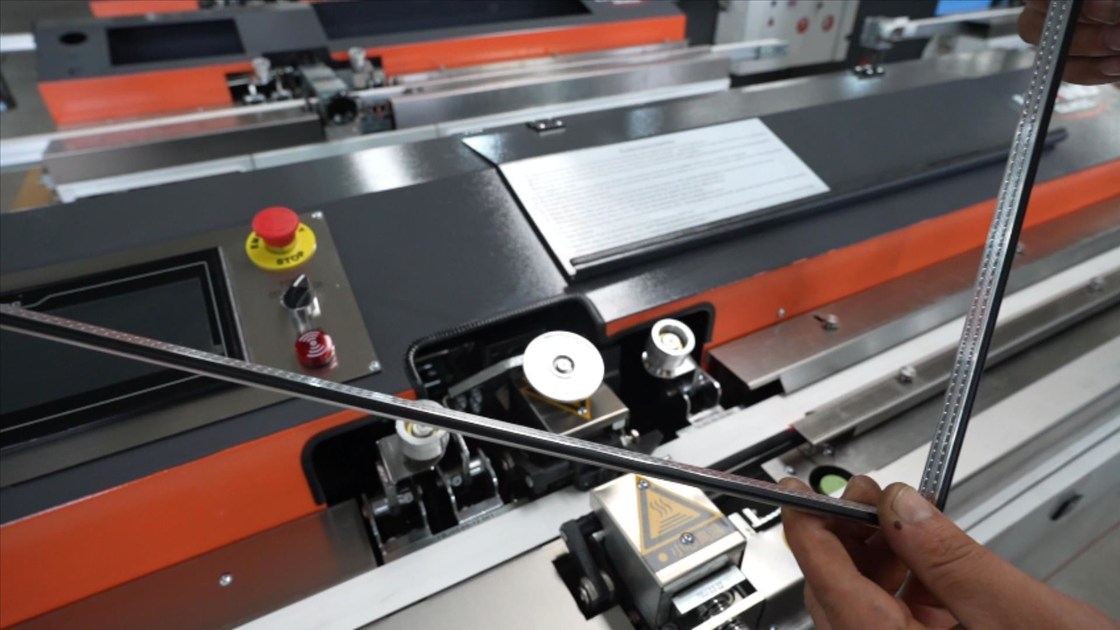 (3) Ρυθμίζετε αυτόματα την απόσταση μεταξύ των εμπρός και των πίσω ακροφύλλων κόλλας σύμφωνα με το πλάτος του αλουμινίου.