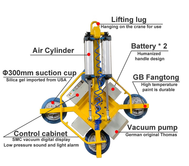 Η συσκευή χρησιμοποιείται συνήθως για την εργασία φόρτωσης και εκφόρτωσης γυαλιού στη βαθιά διαδικασία επεξεργασίας γυαλιού, όπως η κοπή, η λείανση, ο καθαρισμός, ο μετριάζοντας φούρνος, το γυαλί ελασματοποίησης και το μονωμένο γυαλί.