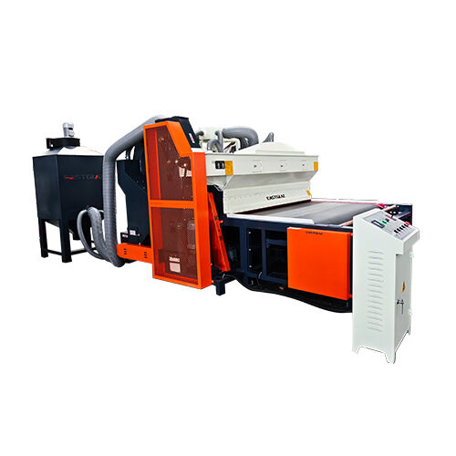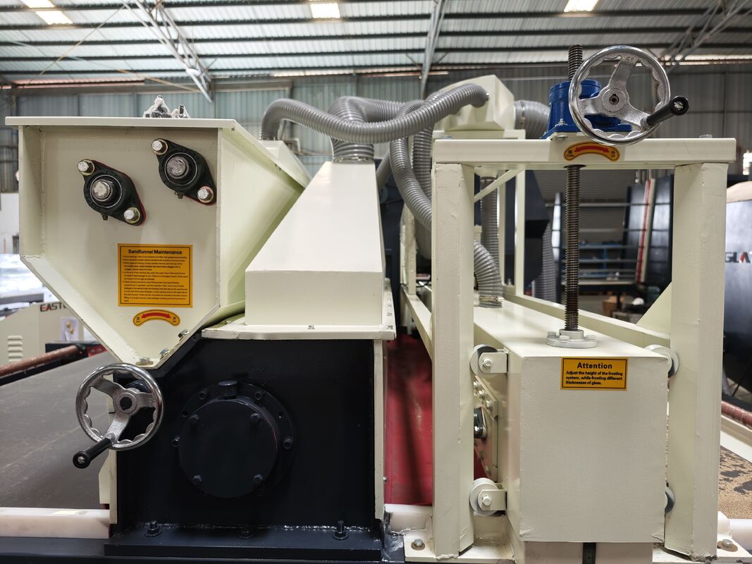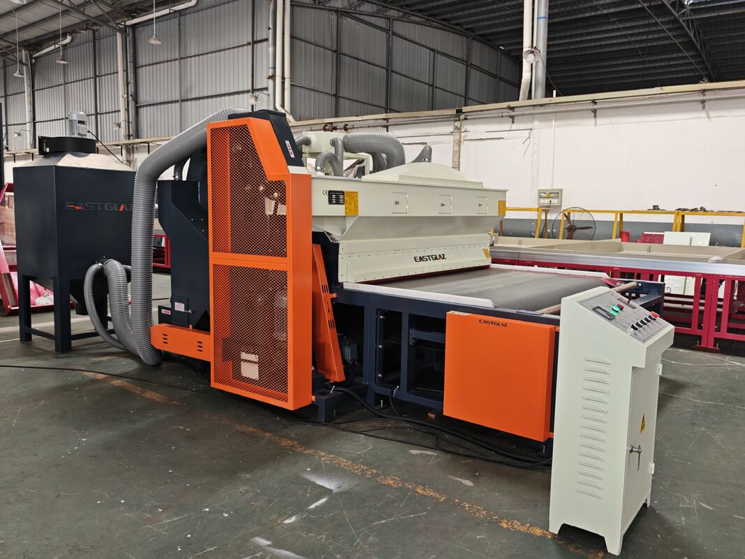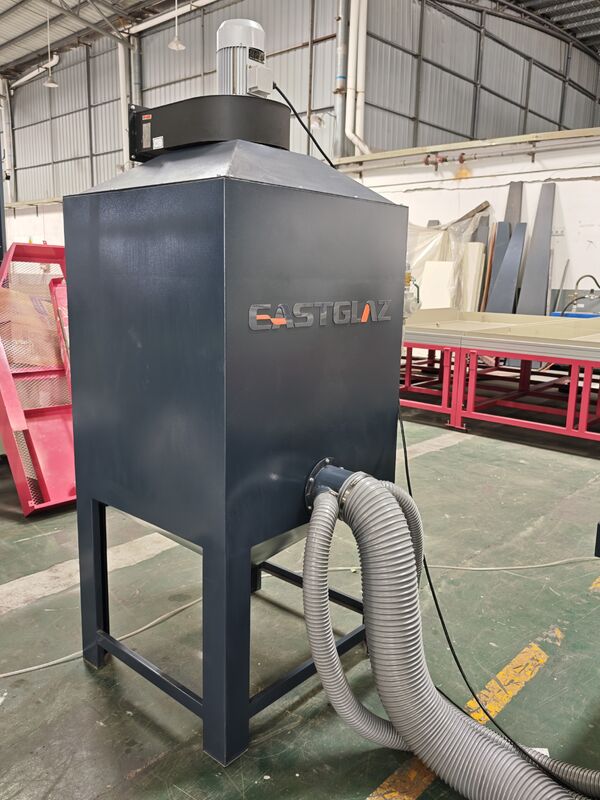 Full-automatic glass sandblasting machine contains of dust collecting--sand sweeping--transportation--grit feeding--sandblasting--sound attenuation--grit filtration--grit equalization--grit storage--shakeout. Κάθε τμήμα της διαδικασίας παραγωγής ολοκληρώνεται αυτόματα. Βελτιωμένο εργασιακό περιβάλλον και μειωμένη ένταση εργασίας.το μηχάνημα έχει γίνει αποδεκτό και επιλεγεί από την πλειοψηφία των πελατώνΑυτό το μηχάνημα είναι κατάλληλο για την άμωση της επιφάνειας του γυαλιού, του ακρυλικού, της πέτρας, της κεραμικής, του μετάλλου και άλλων υλικών.